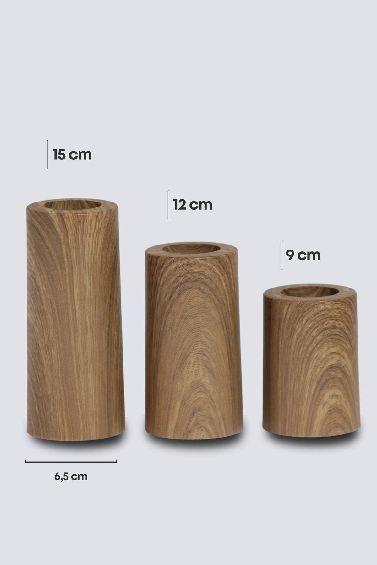 ŞIK TASARIMLI 3 Lü Ahşap Kaplama Yüzey Mumluk Dekoratif Tealight Set Mum Abs Plastik ŞAMDAN / MUMLUK