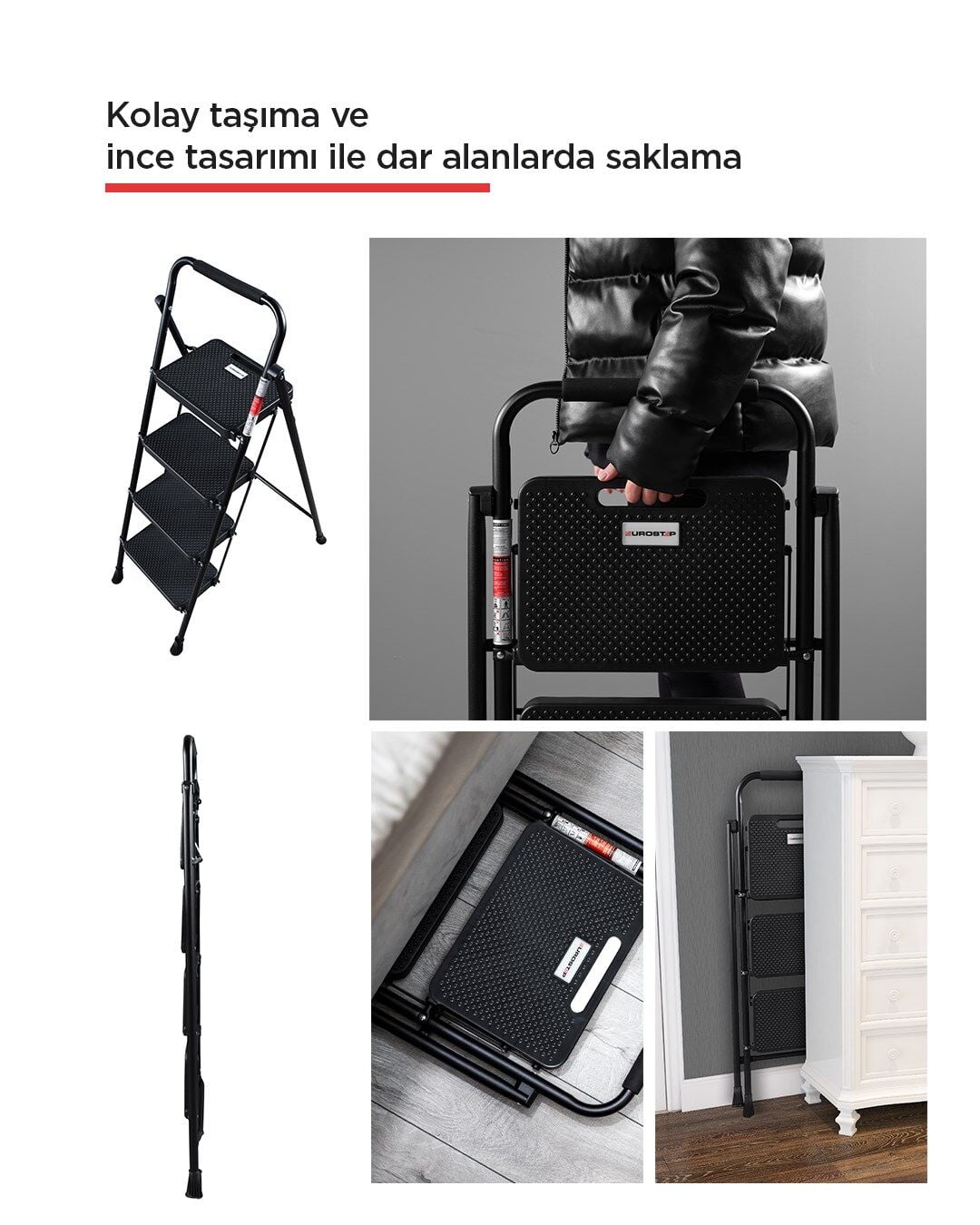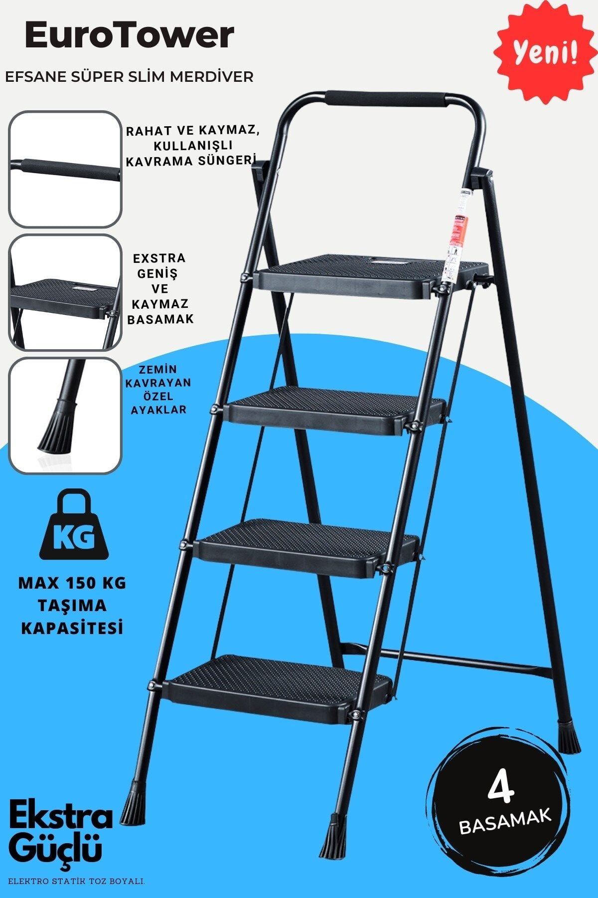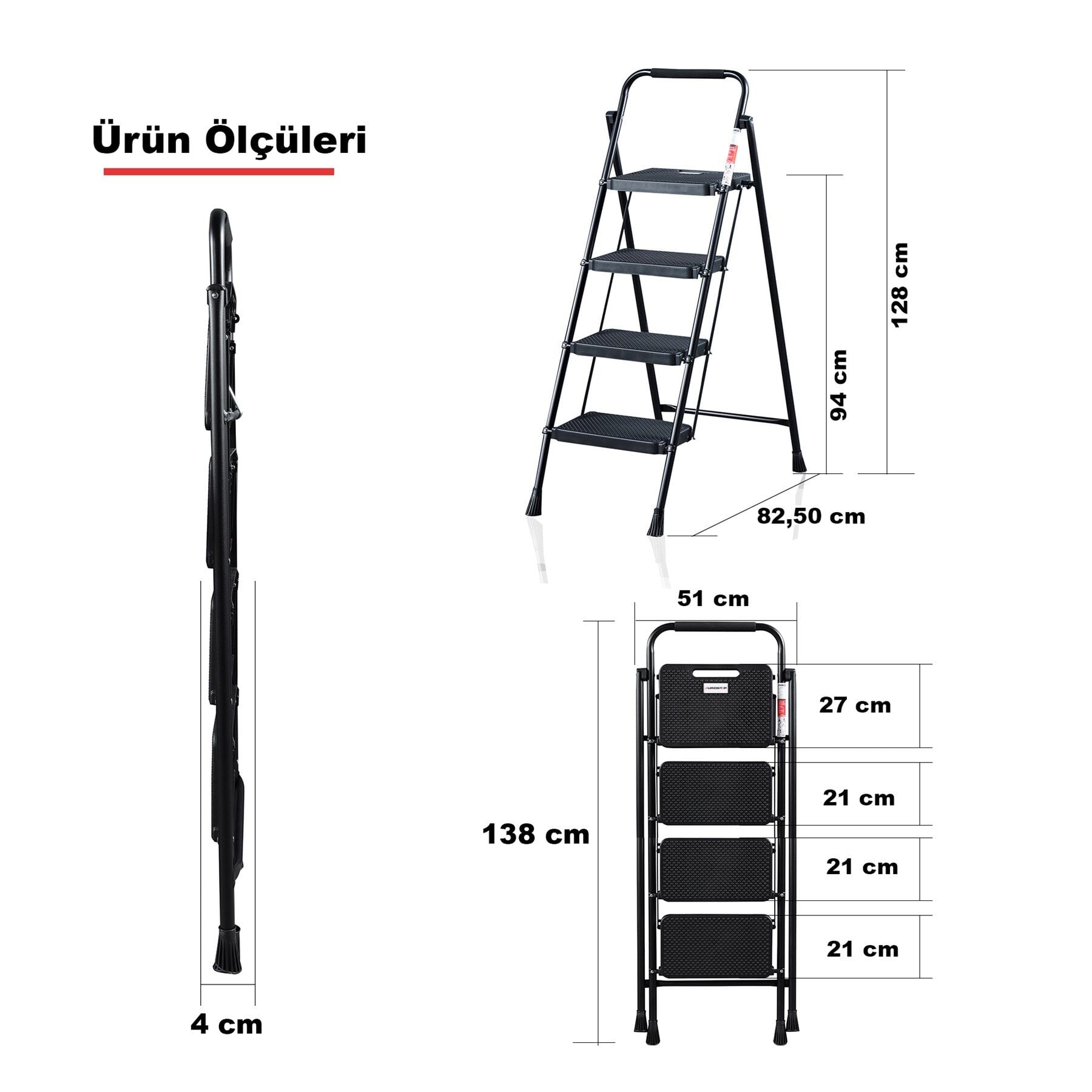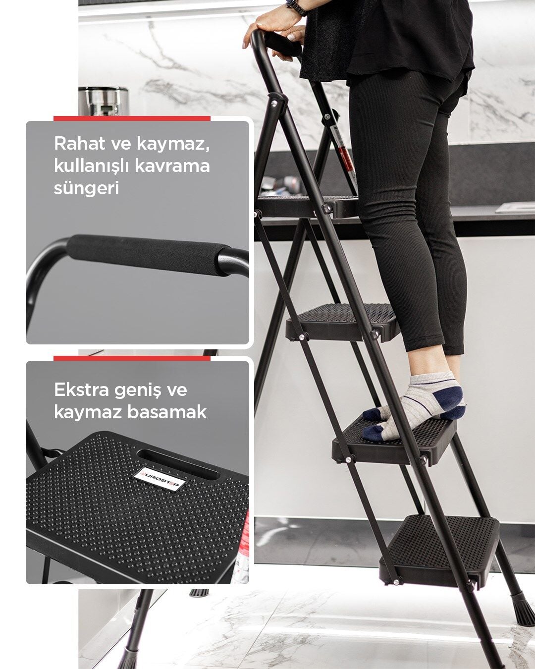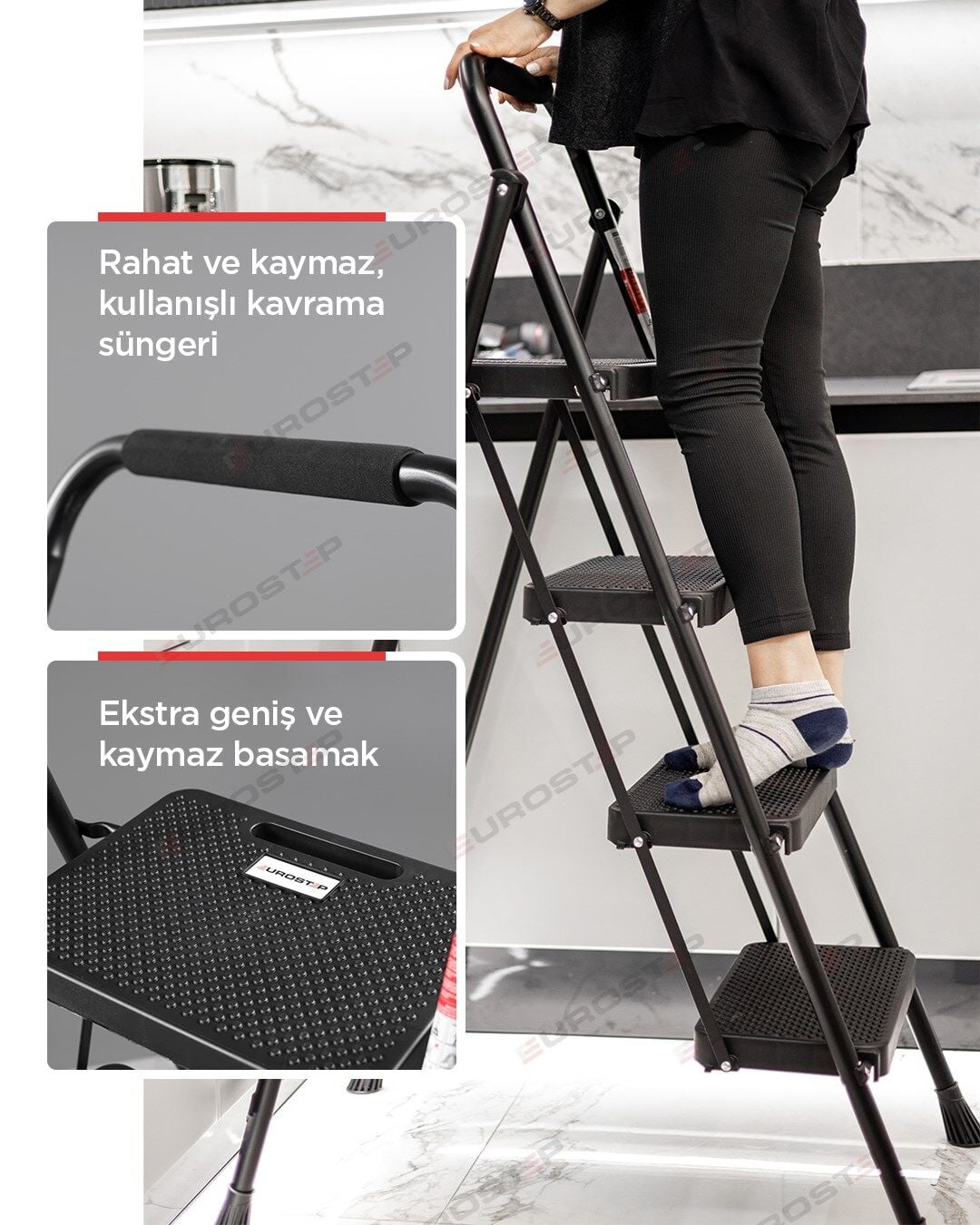 4 Basamak Siyah Merdiven Geniş Basamaklı EUROTOWER, ET4