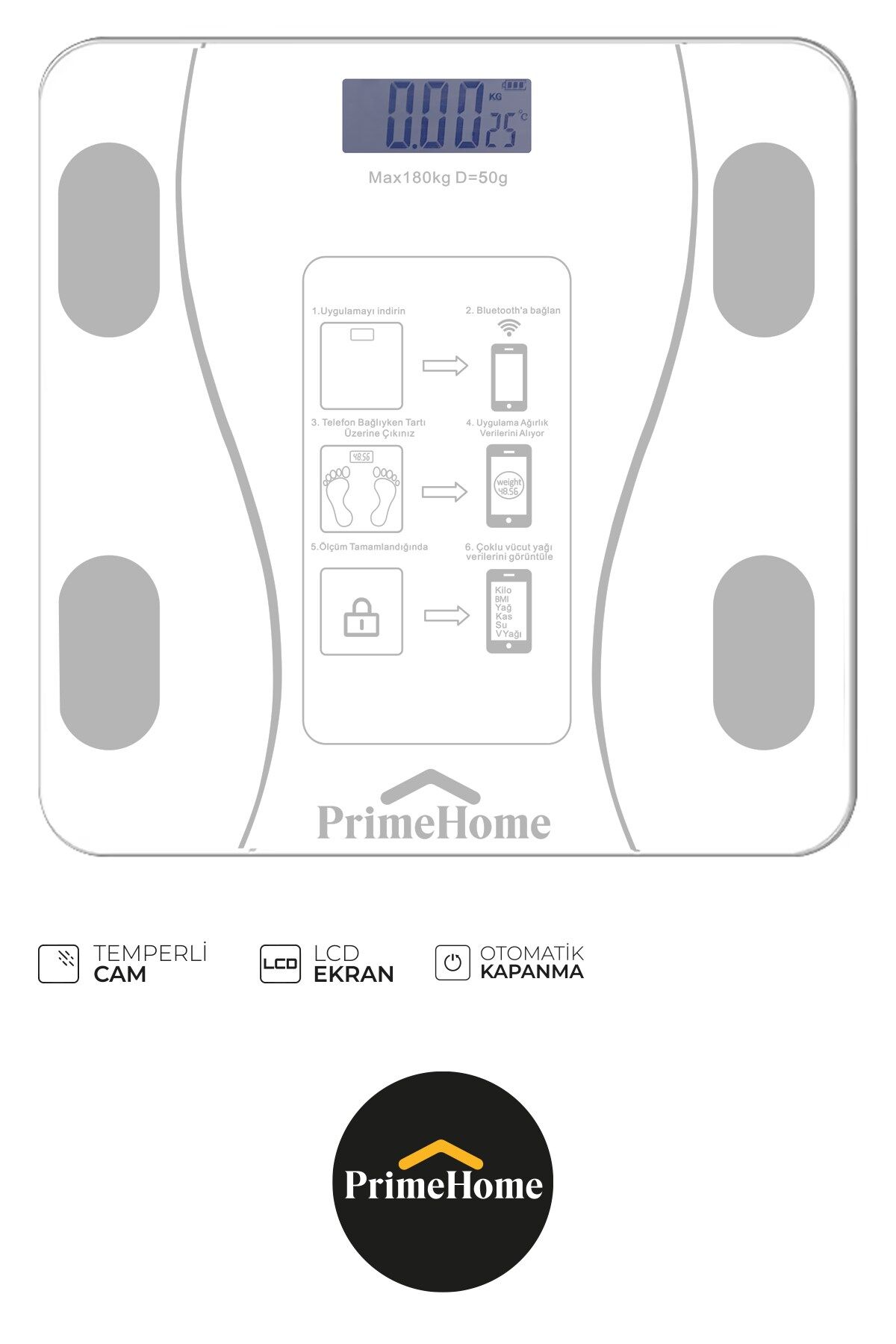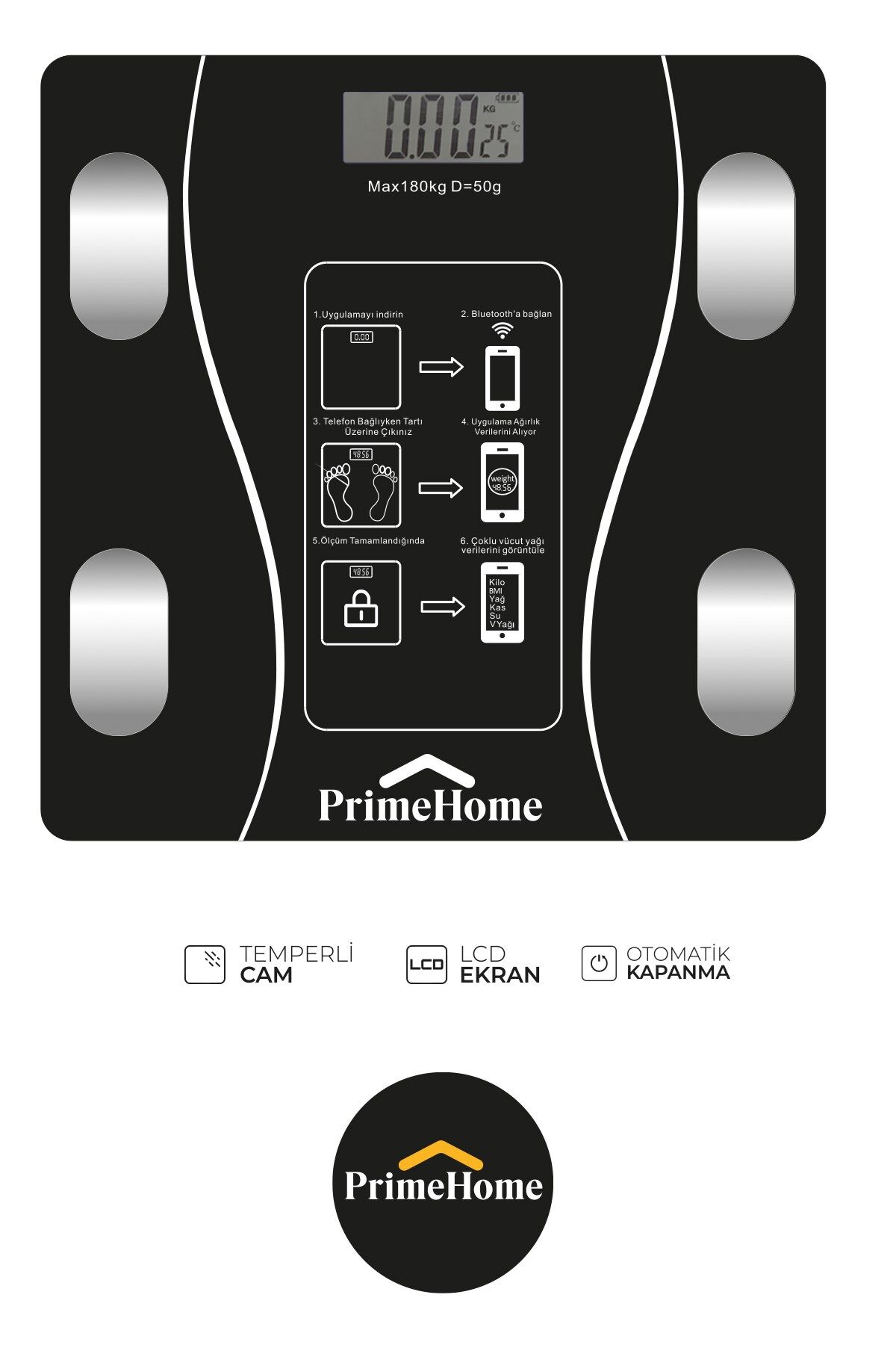 Dijital Baskül Yağ Su Kas Vücut Kitle Endeksi Kilo Ölçer Tartı
