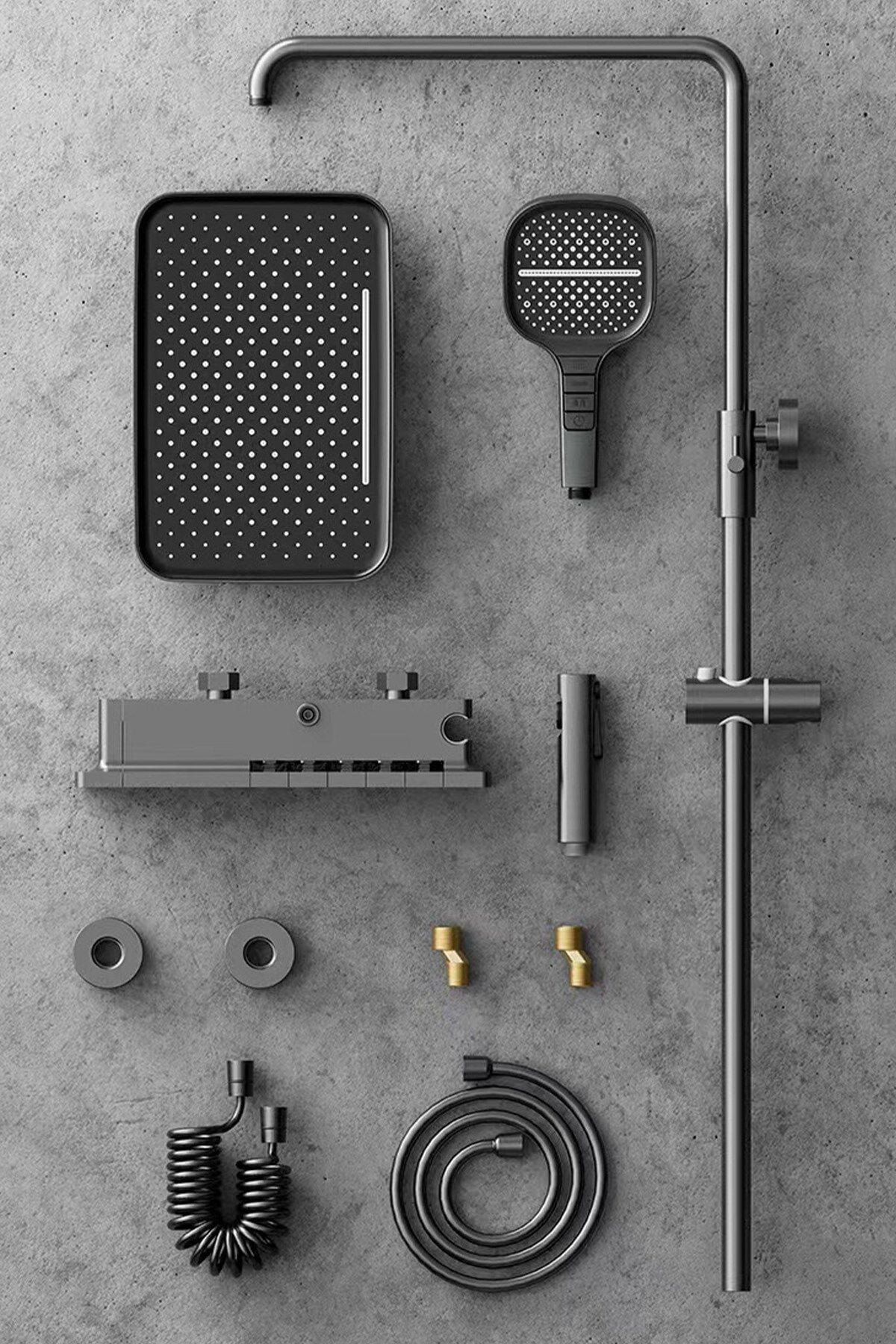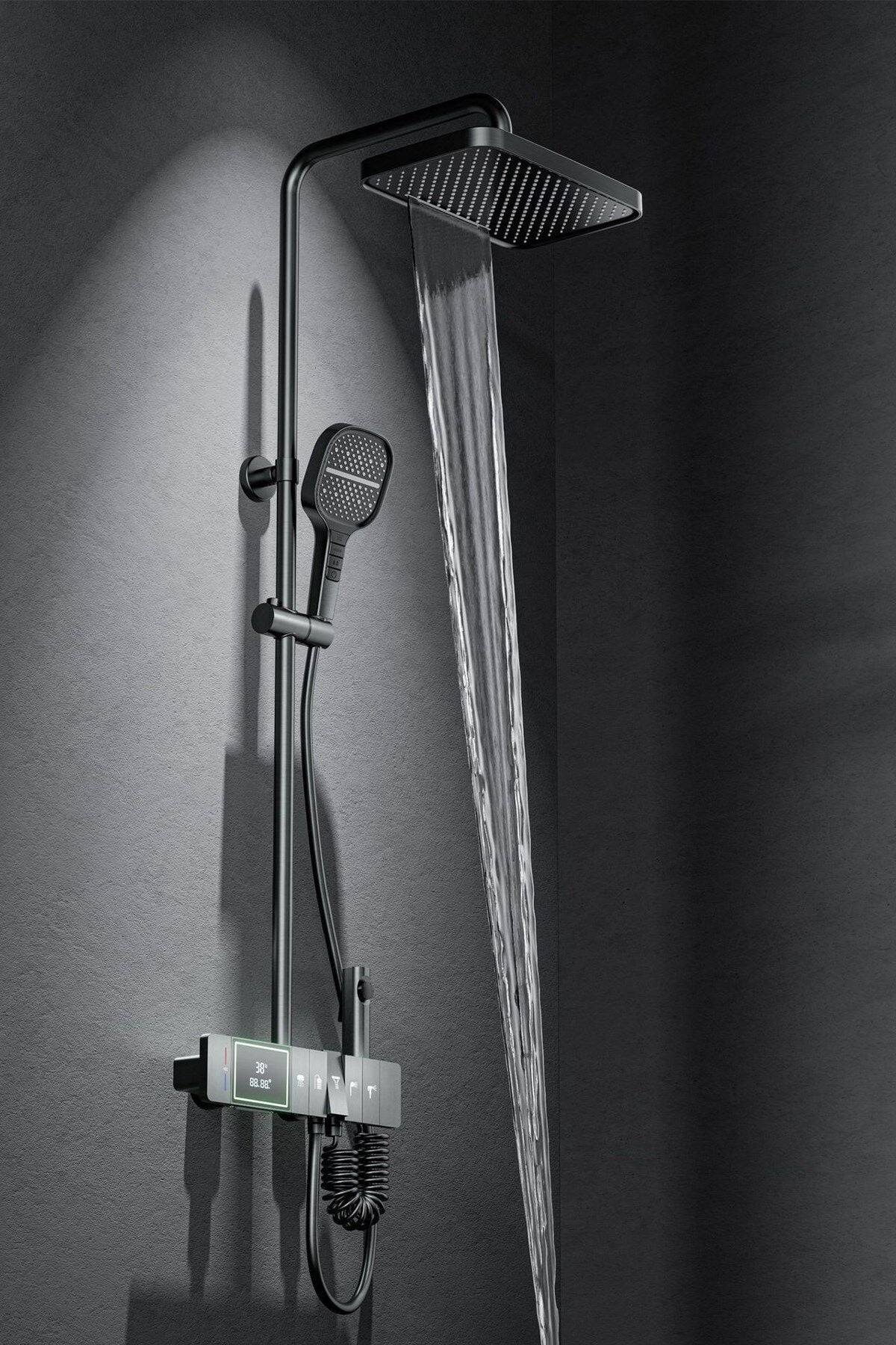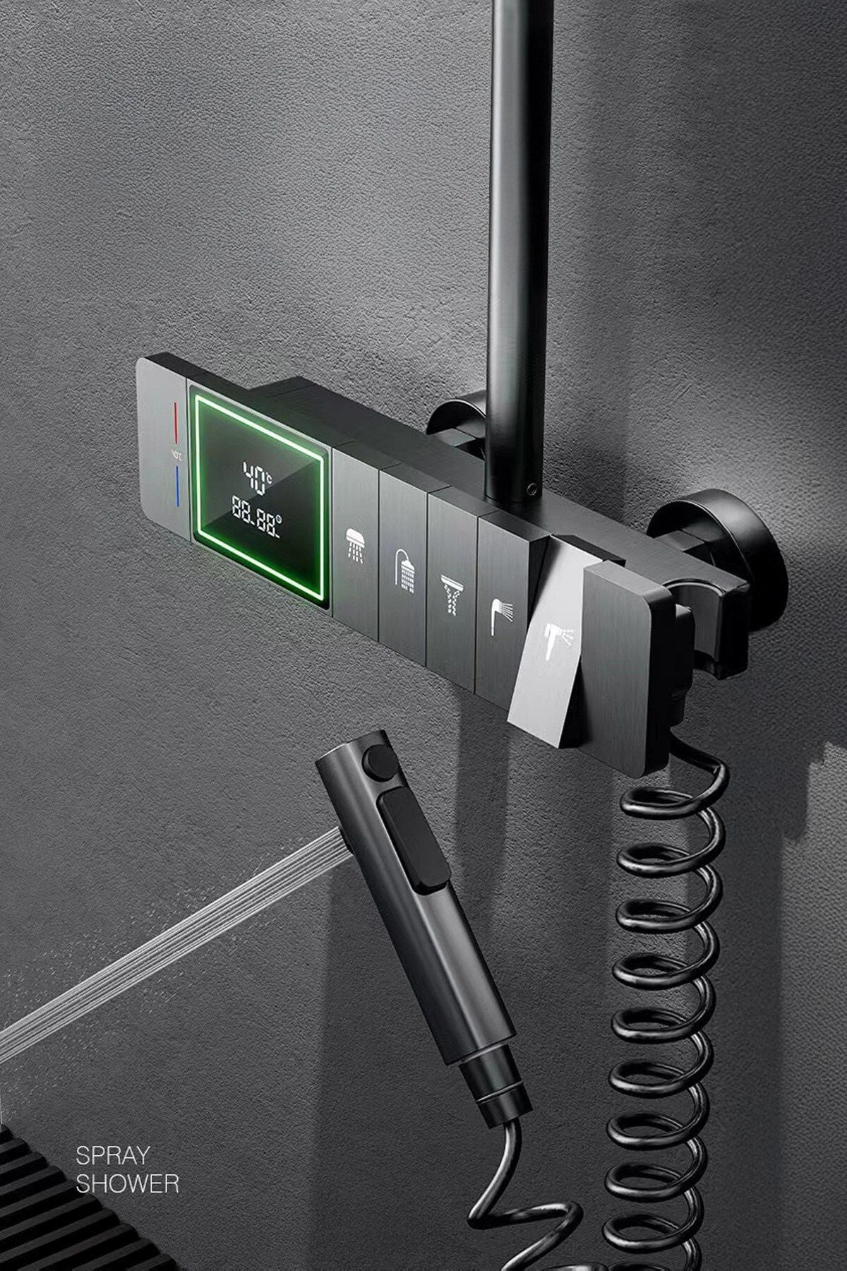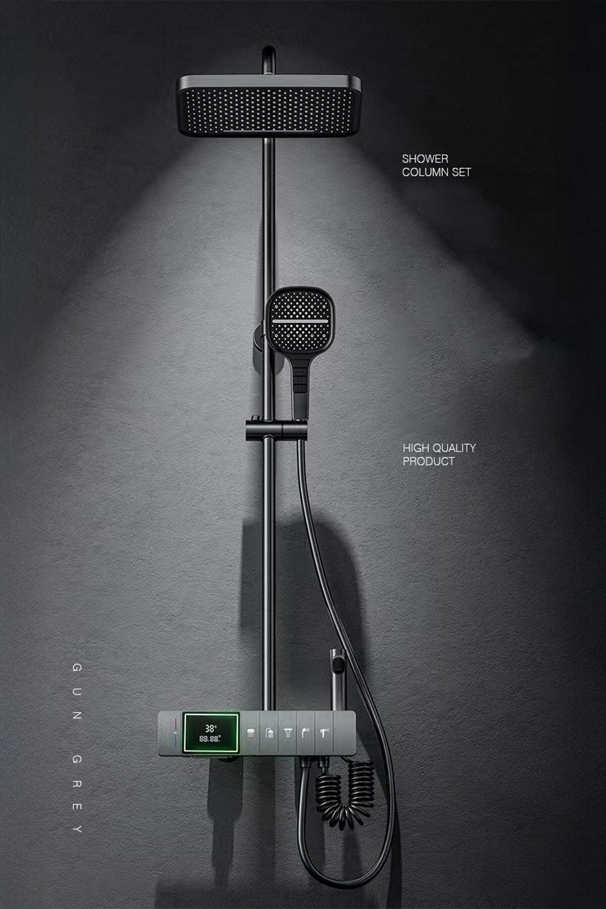 Lüks Bakır Gövde Dijital Ekranlı Duş Sistemi Dijital Isı Göstergeli Premium Piyano Duş Takımı