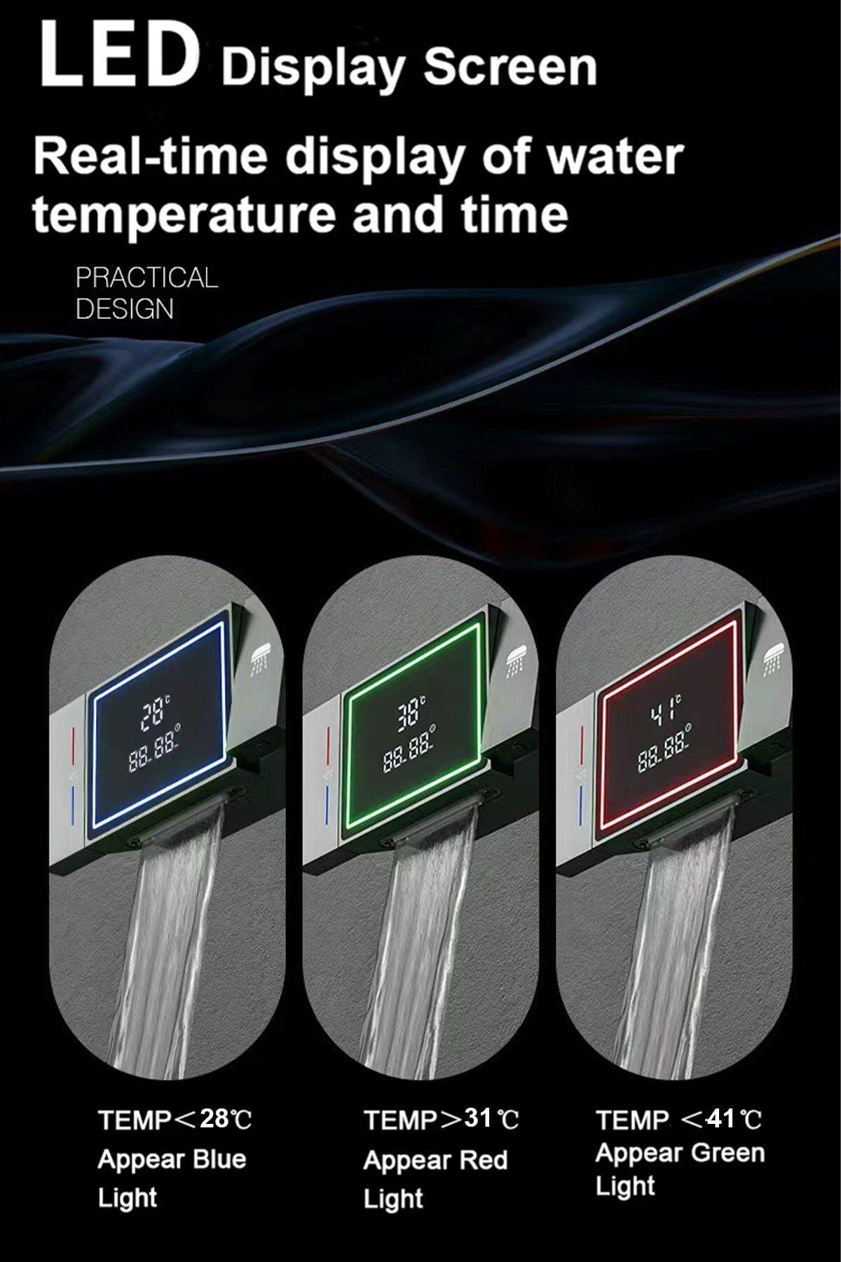 Dijital Isı ve Zaman Göstergesi: Su sıcaklığını ve kullanım süresini anlık olarak takip edebileceğiniz şık bir ekrana sahiptir. (Pil gerektirmez, su akış gücüyle çalışır.)