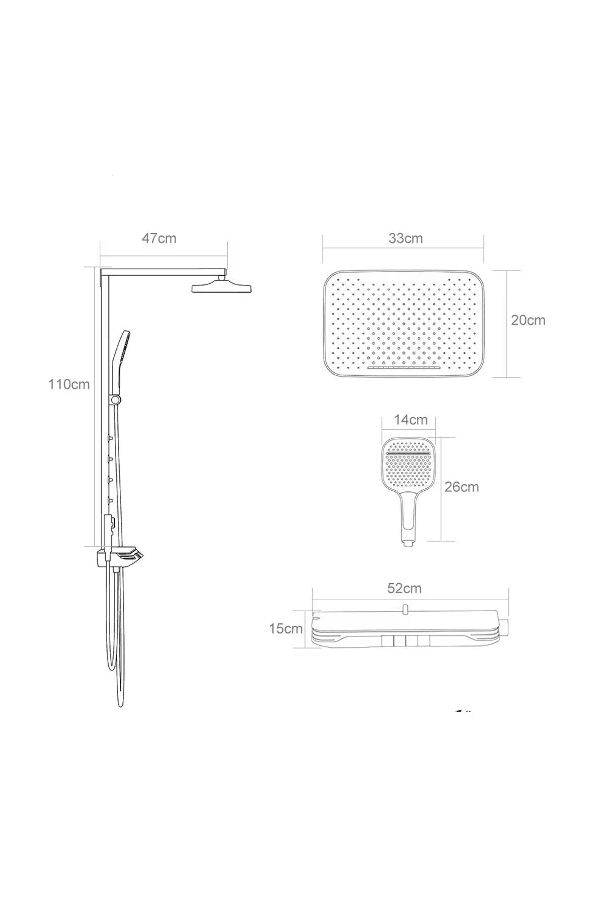 Paket İçeriği: 1 adet Termostatik Ana Gövde, 1 adet Kare Yağmurlama Duş Başlığı, 1 adet Fonksiyonel El Duşu, Masaj Jetli Panel Sistemi, Bağlantı Aparatları ve Montaj Kiti.