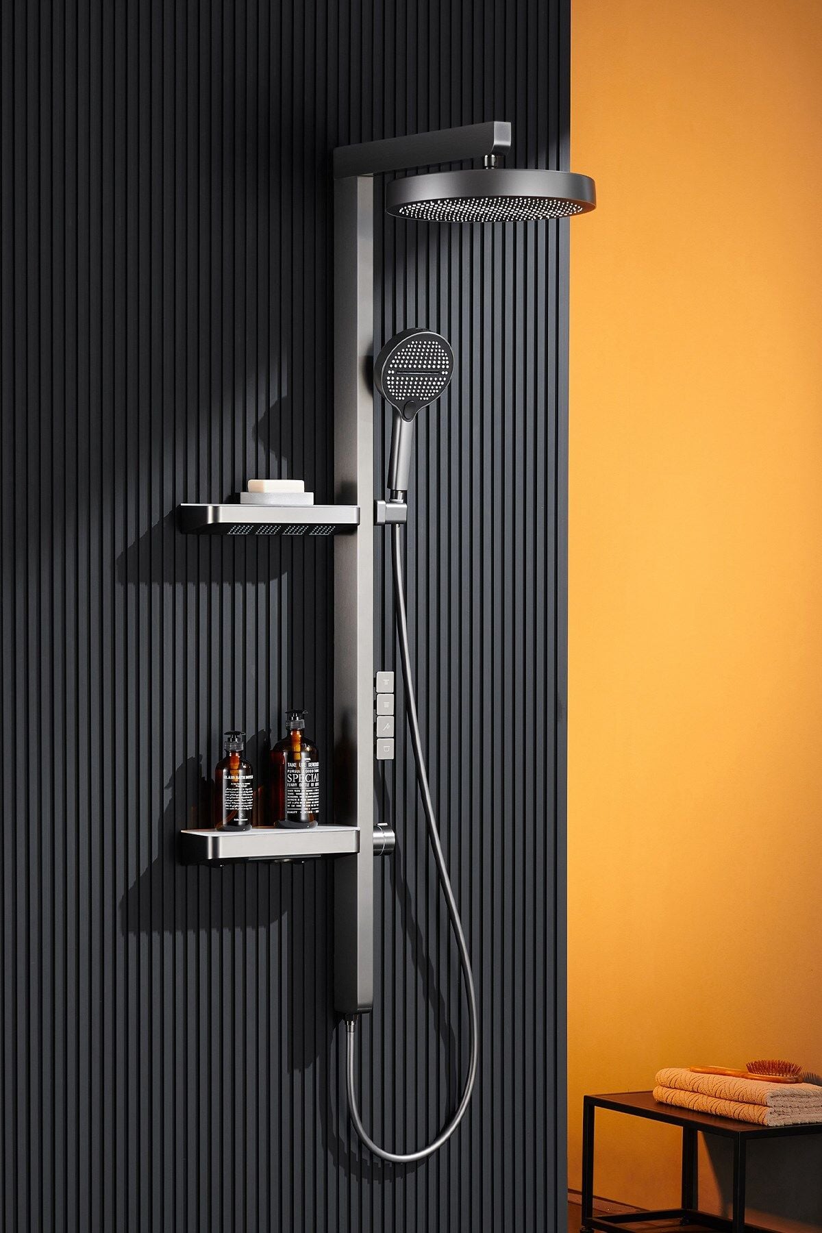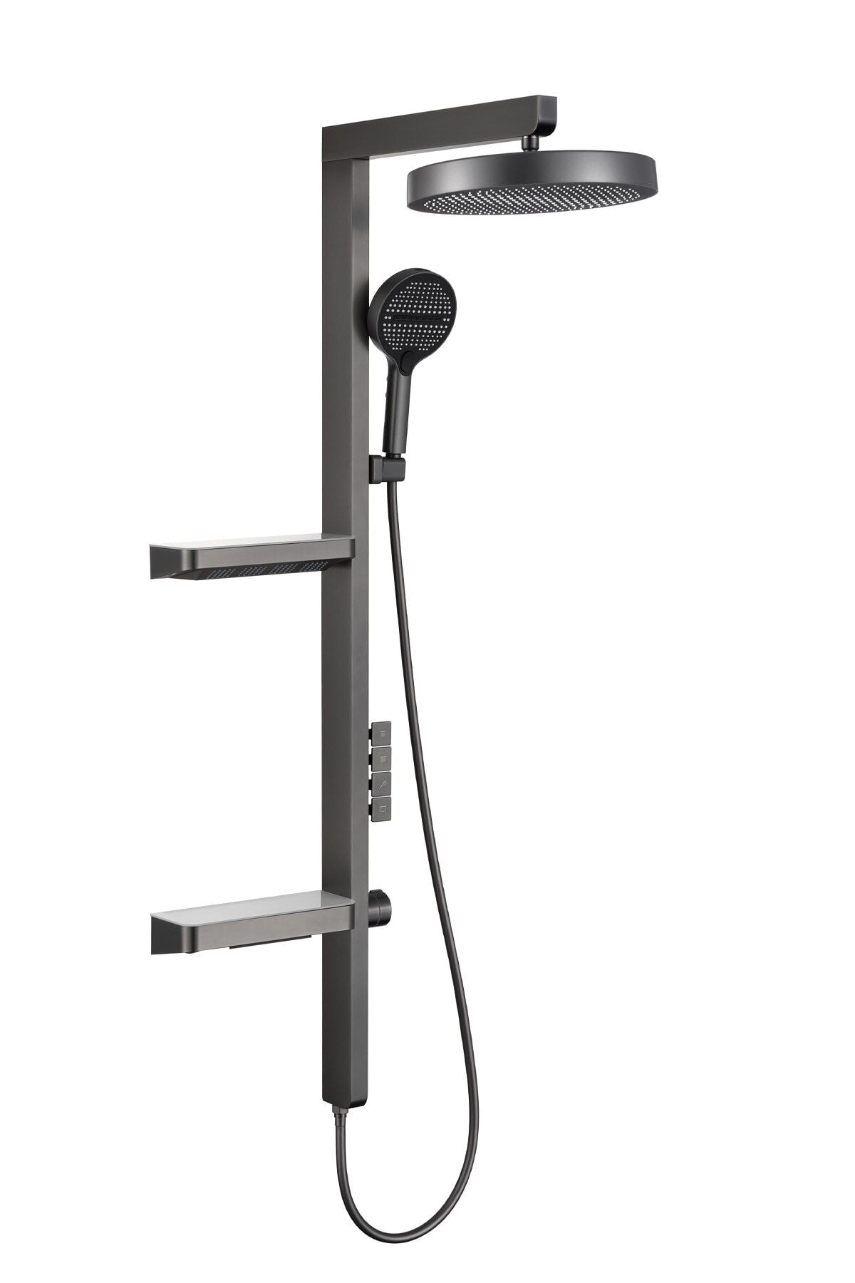Fonksiyonel Tasarım: Üzerinde yer alan şık butonlar sayesinde tepe duşu, el duşu ve alt çıkış arasında kolayca geçiş yapabilirsiniz.