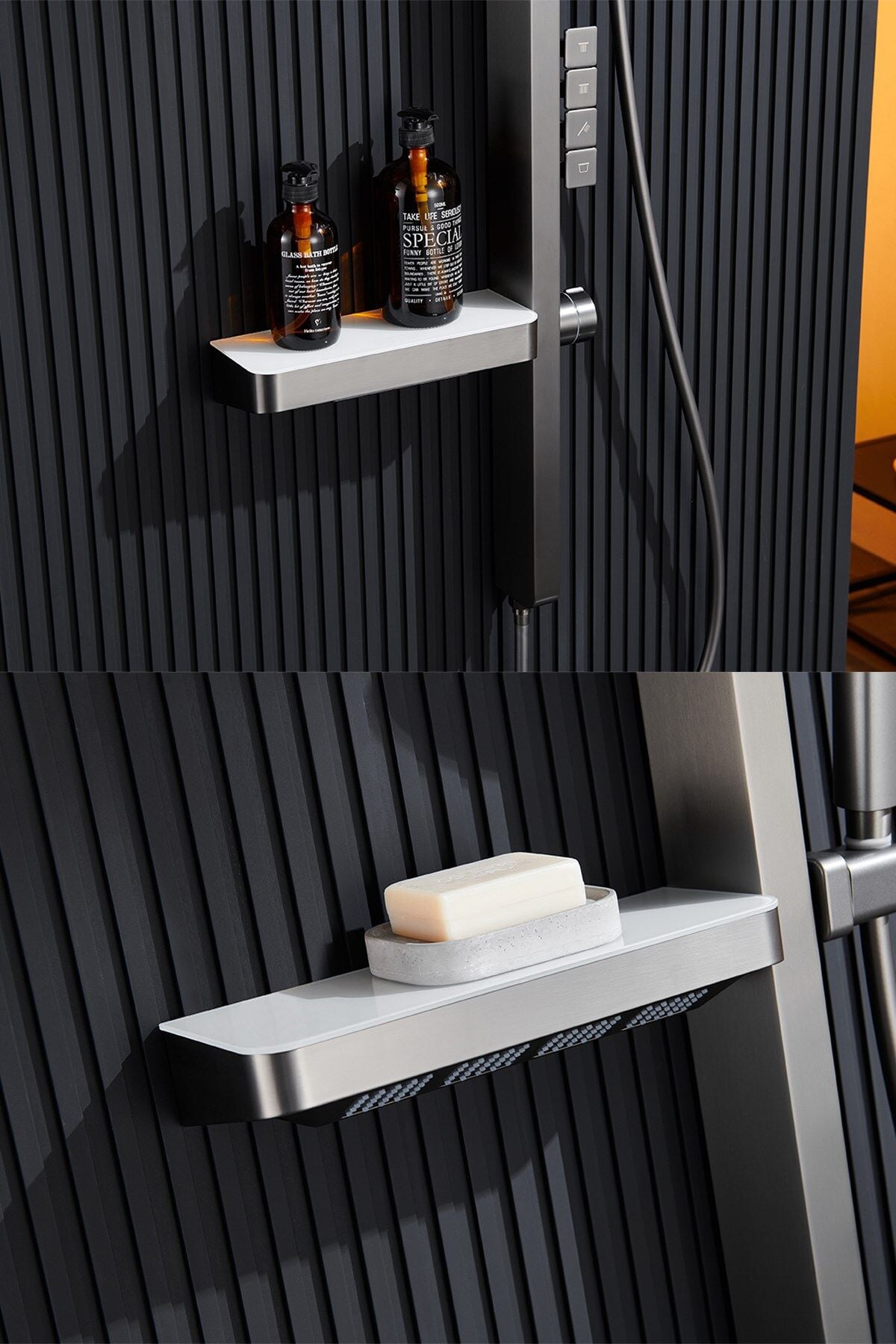 Entegre Raf Sistemi: Banyo ürünleriniz için yerleşik, şık ve sağlam iki adet raf bölmesi mevcuttur.