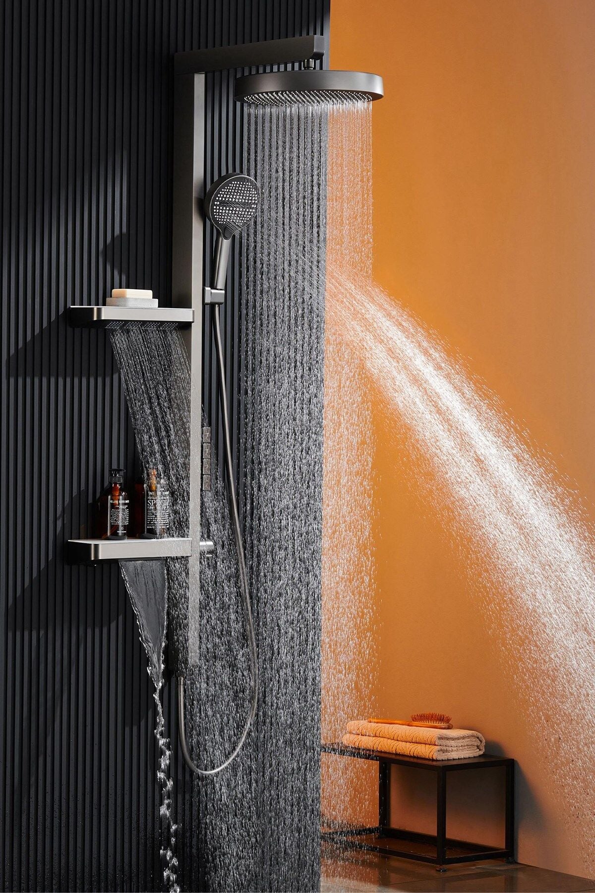 Banyonuzu lüks bir spa deneyimine dönüştürmek için tasarlanan bu özel duş seti, hem görsel şıklığı hem de ömürlük kullanım sunan malzeme kalitesiyle öne çıkıyor. Piyasadaki hafif ve plastik ağırlıklı ürünlerin aksine, 15 KG brüt ağırlığı ile gerçek kaliteyi ve sağlamlığı hissettirir.